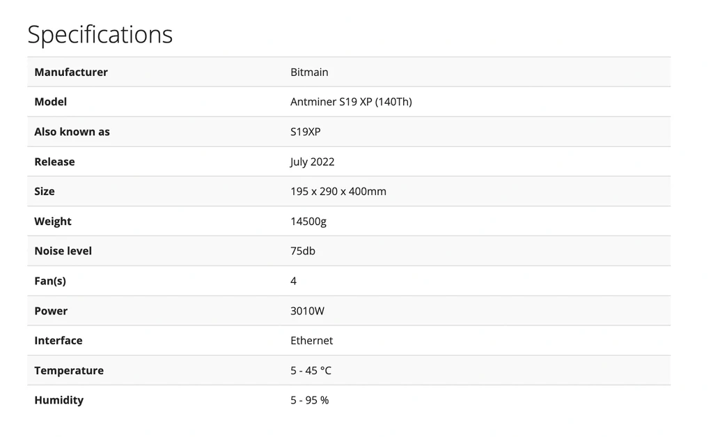 Model Antminer S19 XP (141Th) from Bitmain mining SHA-256 algorithm with a maximum hashrate of 141Th/s for a power consumption of 3010W. From the looks of it, the appearance is the same as other Bitmain miners. However, there’s a sleeker look, thanks to the change in positioning. Hashrate of the Bitmain Antminer S19 XP (141 Th) 140 Th/s is…